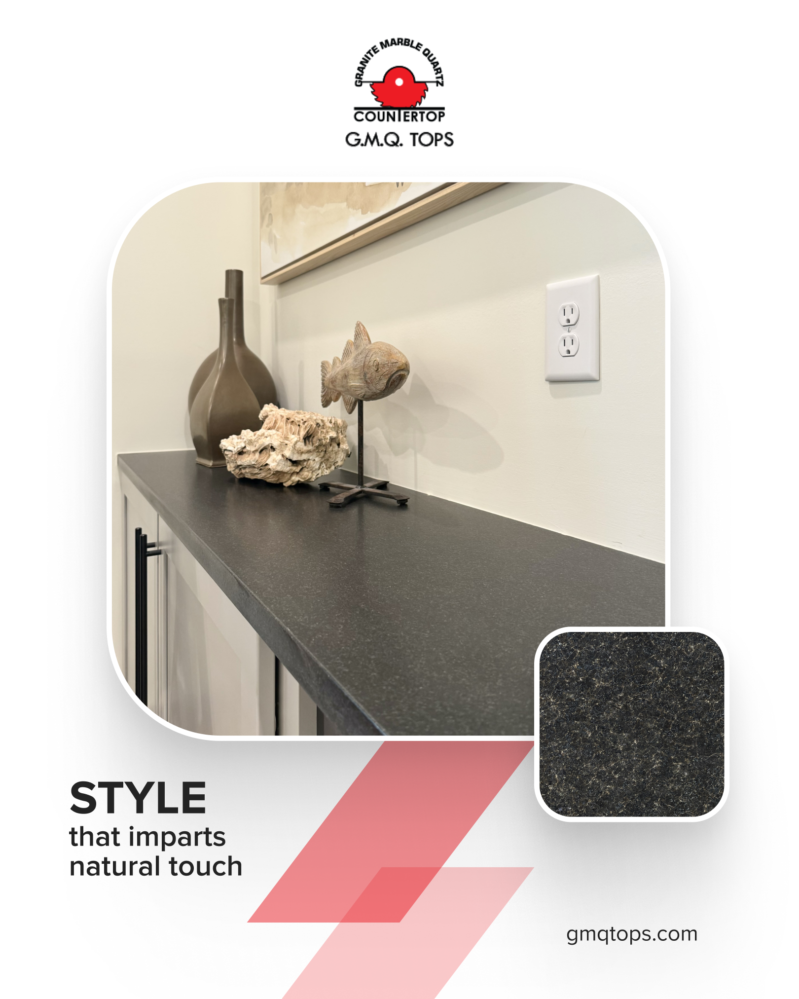 At GMQ Tops we offer a wide range of granite selections to match any style, from classic to contemporary. Whether you’re renovating your kitchen, bathroom, or other areas, granite brings durability, beauty, and value to your home. Let us help you find the perfect granite countertop for your next project!